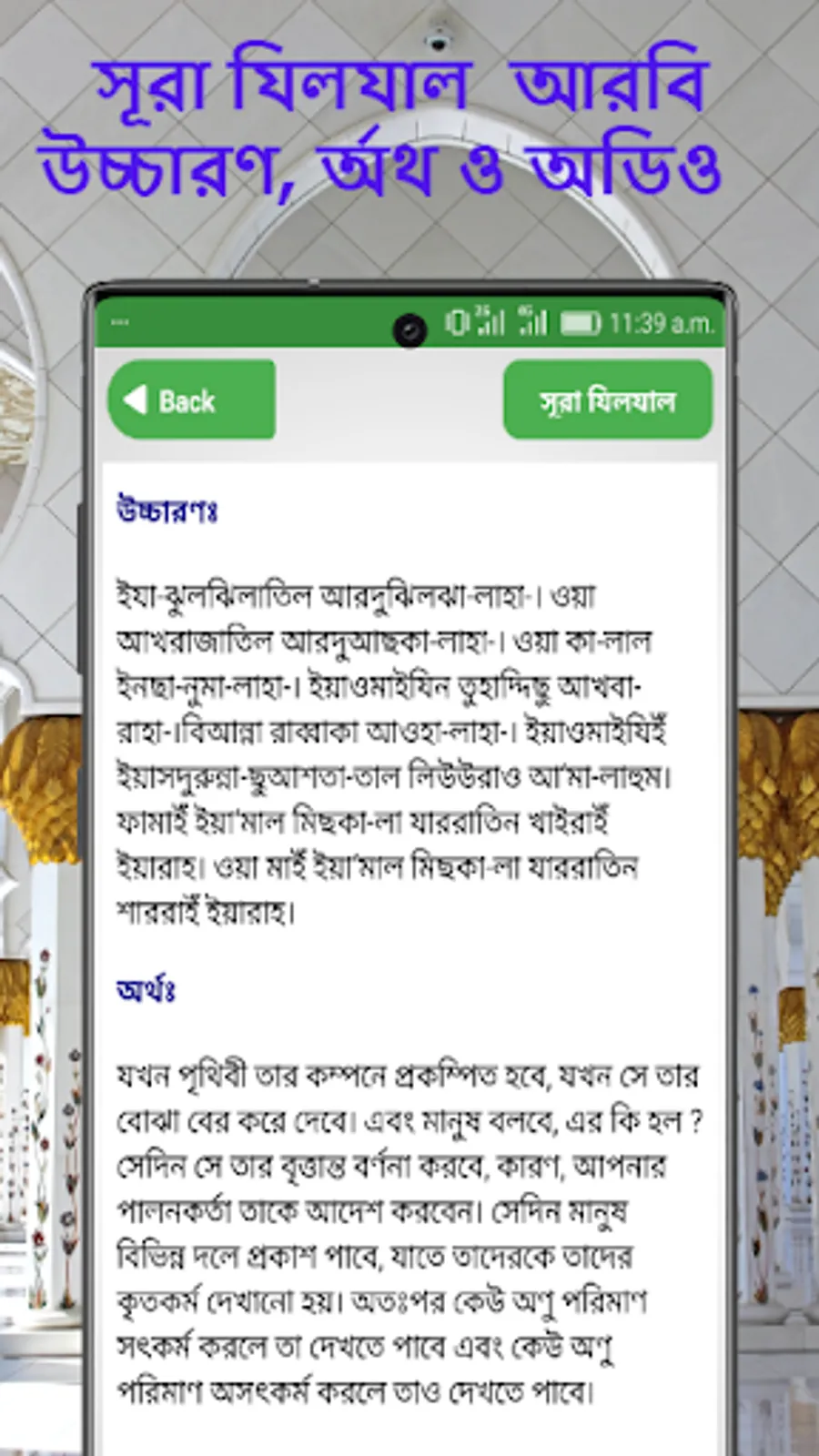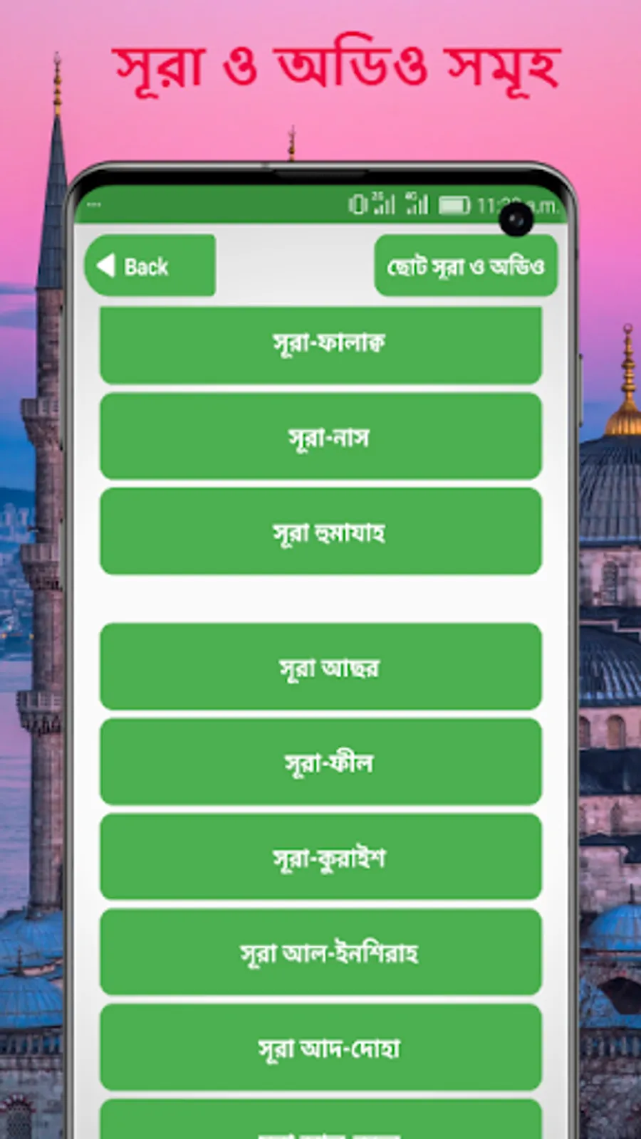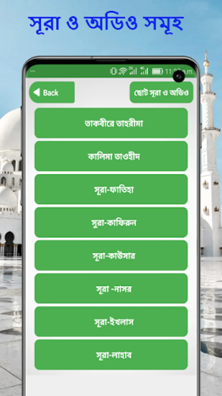 এই অ্যাপ টিতে আরও থাকছে, সূরা আল ফাতিহা, সূরা ফীল, সূরা কোরাইশ, সূরা মাউন, সূরা কাওসার, সূরা কাফিরুন, সূরা নছর, সূরা লাহাব, সূরা এখলাছ, সূরা ফালাক,সূরা নাস, ছোট সূরা বাংলা, Surah Al-Fatihah, Surah Al-Tatfif, Surah Al-Insyiqaq, Surah Al-Buruj, Surah At-Tariq, Surah Al-A'la, Surah Al-Gasyiyah, Surah Al-Fajr, Surah Al-Balad, Surah Asy-Syamsa, Surah Al-Lail, Surah Ad-Duha, Surah Al-Insyirah, Surah At-Tin, Surah Al-'Alaq, Surah Al-Qadr, Surah Al-Bayyinah, Surah Az-Zalzalah, Surah Al-'Adiyat, Surah Al-Qari'ah, Surah At-Takasur, Surah Al-'Asr, Surah Al-Humazah, Surah Al-Fil, Surah Quraisy, Surah Al-Ma'un, Surah Al-Kausar, Surah Al-Kafirun, Surah An-Nasr, Surah Al-Lahab, Surah Al-Ikhlas, Surah Al-Falaq, Surah An-Nas, 33 small surah from Al Quran, Islamic app, namaz shikkha,