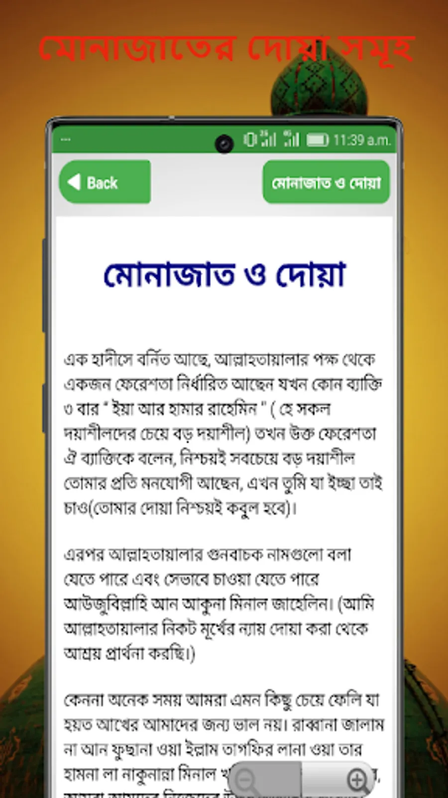 এখানে ২৬ খানা ছোট সূরা বাংলা উচ্চারণ সহ অর্থ, mp3 ফাইল এবং সূরাগুলির তাফসীর দেয়া হয়েছে। যাতে করে খুব সহজেই সূরাগুলি শুনতে, পড়তে ও বুঝতে পারেন। যারা এখনো নাময পড়ার জন্য সূরা শিখেন নাই এই App থেকে খুব সহজেই শিখতে পারবেন অথবা আপনার ঘরে যদি কোন ছোট বাচ্চা থাকে তাদেরকেও শিখাতে পারবেন এবং সূরা সমূহের বিস্তারিত ব্যাখ্যার জন্য রয়েছে তাফসির। মুসলমান অথচ নামাজ পড়তে জানেন না এমন মানুষ হয়ত খুজে পাওয়া কঠিন। কিন্তু নামাজের মধ্যে যে সকল দোয়া ও সূরা পড়া হয় তা হয়ত অনেকেরই মুখস্থ নেই। তাই তাদের জন্যই এই নামাযের দোয়া ও সূরা অ্যাপ। অ্যাপটিতে পাবেন নামাযের শুরু থেকে শেষ পর্যন্ত সব তাসবিহ, সূরা ও দোয়া। রয়েছে বাংলা উচ্চারন ও বাংলা অনুবাদ।