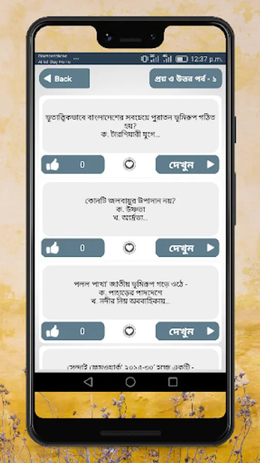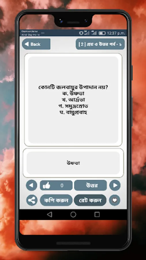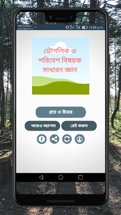 ভূগোল, পরিবেশ, ও দুর্যোগ ব্যবস্থাপনা বিষয়ক প্রশ্ন ও উত্তর নিয়ে সাজানো হয়েছে অ্যাপটি।সকল প্রশ্নের উত্তর পাবেন। ১৫ টি পর্বের মধ্যে প্রায় ৬৫০ টি ভূগোল, পরিবেশ, ও দুর্যোগ ব্যবস্থাপনা বিষয়ক প্রশ্নের সমাধান পাবেন।