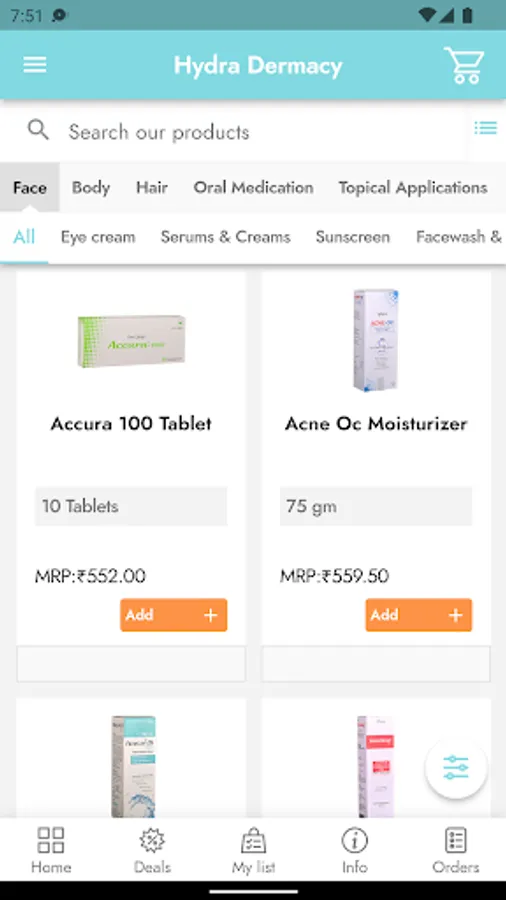 Hydra Dermacy is deals all types of face, body, hair, oral medication, topical applications, oral supplements. This is a famous store in city. Now they are taking online orders and provide delivery to your door steps.