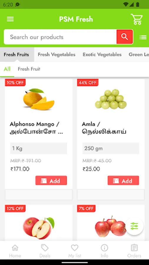PSM Fresh is supermarket deals all types of fresh fruits,fresh vegetables, exotic vegetables, green leaf, grocery staples. This is a famous store in city. Now they are taking online orders and provide delivery to your door steps.
