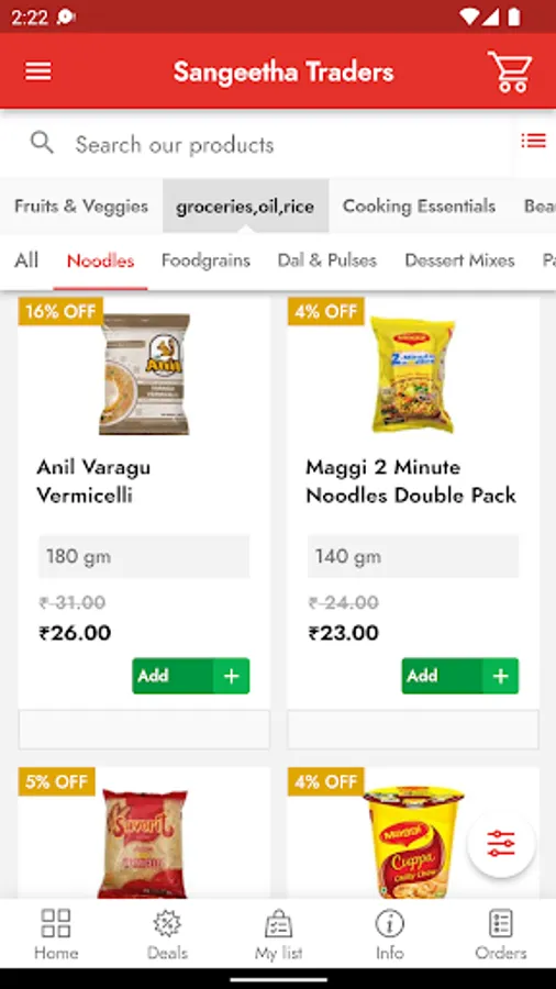 Sangeetha Traders in Pondicherry Bazaar, Pondicherry is a top player in the category Provision Wholesalers in the Pondicherry. This well-known establishment acts as a one-stop destination servicing customers both local and from other parts of Pondicherry. Now you can shop from your living room and we deliver it to your doorstep.