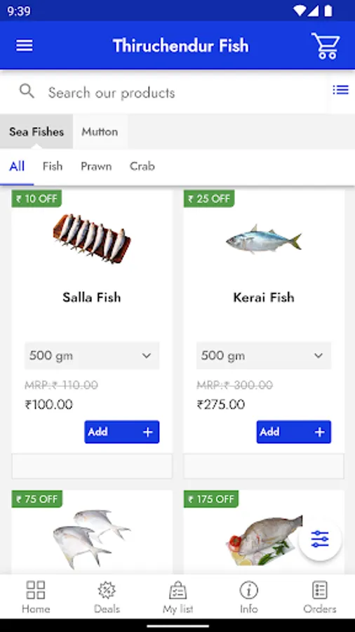 Thiruchendur fish is deals all types of sea fishes, fish, prawn, crab, muton. This is a famous store in city. Now they are taking online orders and provide delivery to your door steps.