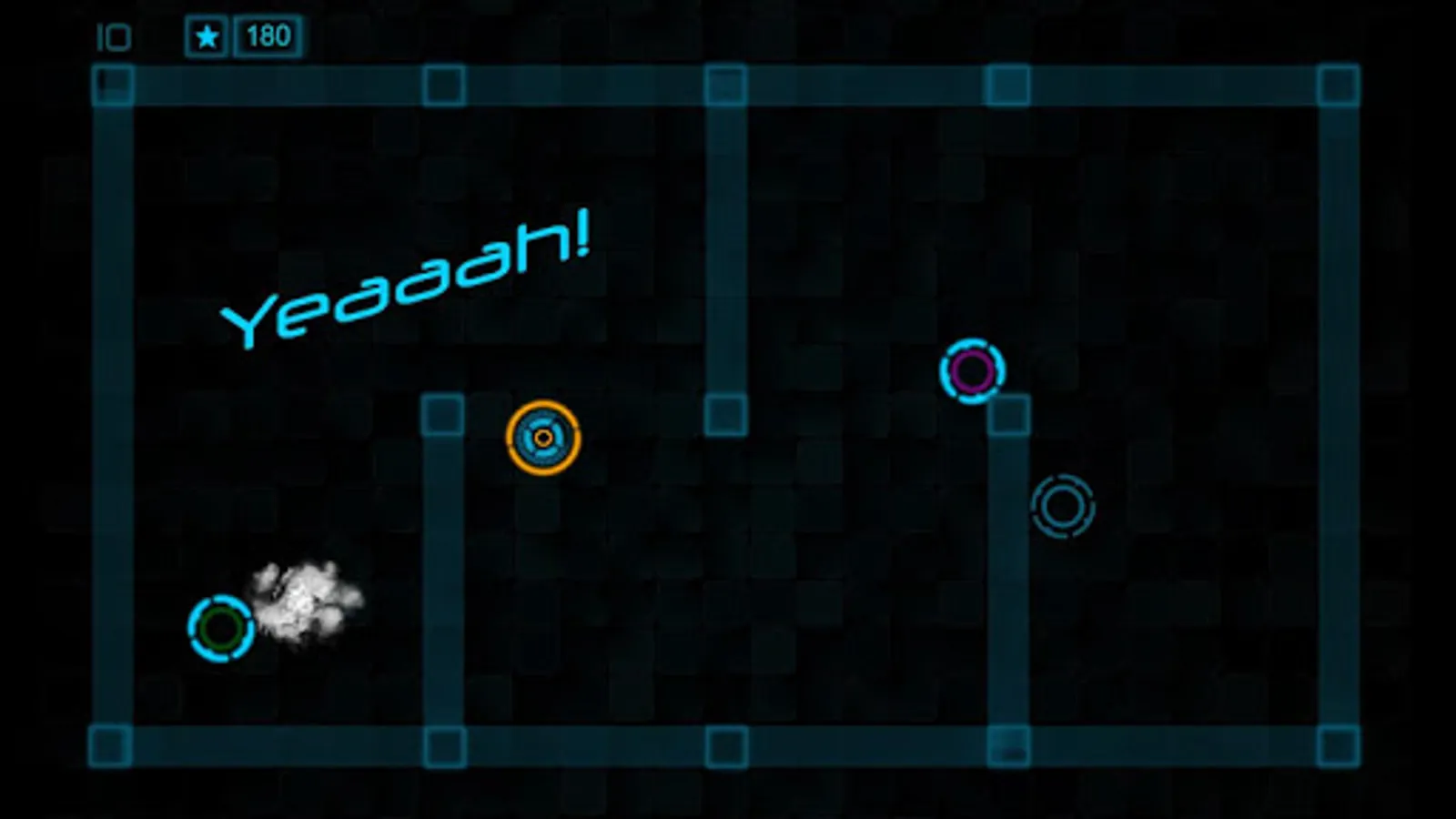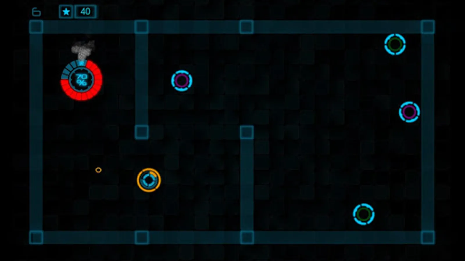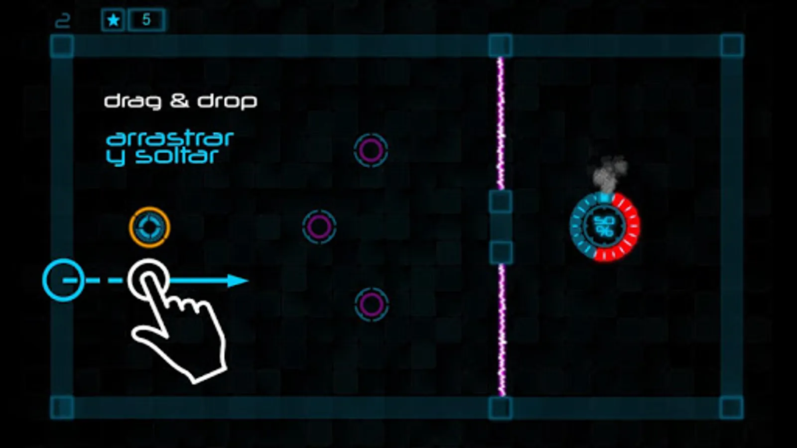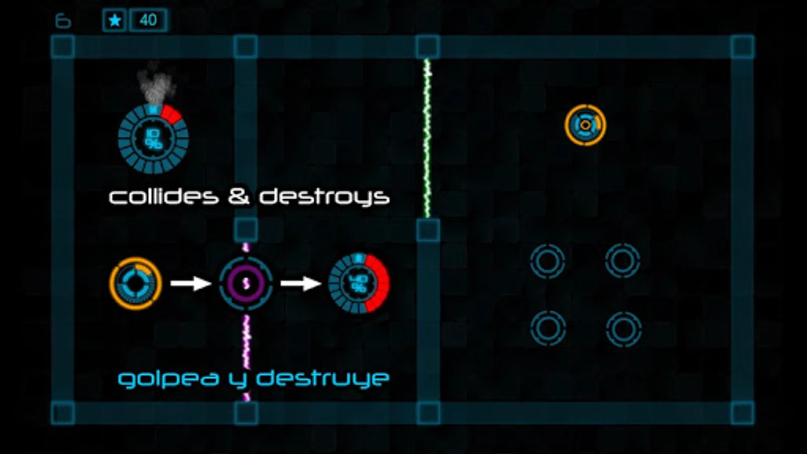 It propels the orange ship against the neon spheres, so you crash against the time bomb that damages it, managing to expel the detonating gas so that it does not explode, and this is taken to the next level.