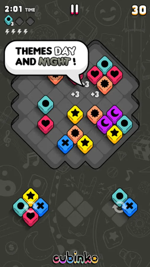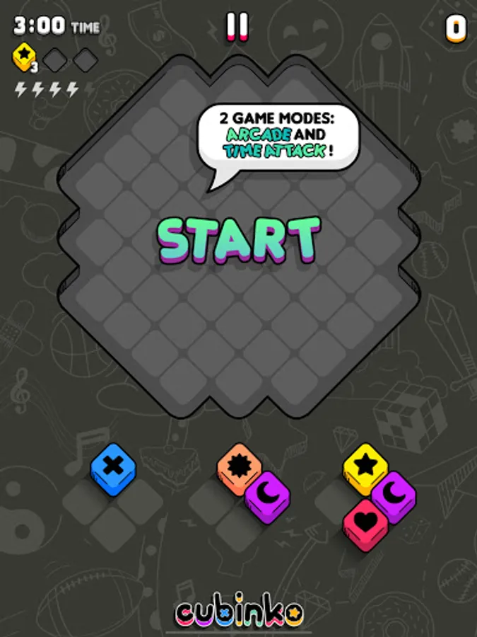 • In ARCADE mode there is no time limit, but you need to complete the missions to get more moves and keep playing. In TIME ATTACK mode things change, you run out of time but there is no limit to your moves, try to take the time to make the most points!