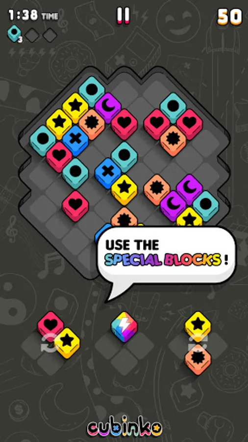 Your puzzle skills will be put to the test with this new match 3 game mode! Our exclusive ink blocks will expand your mind in ways you never imagined in this addictive puzzle game. Enjoy the satisfaction of fitting pieces perfectly into place, filling the board with an explosion of colors, and with an extremely fun design!
