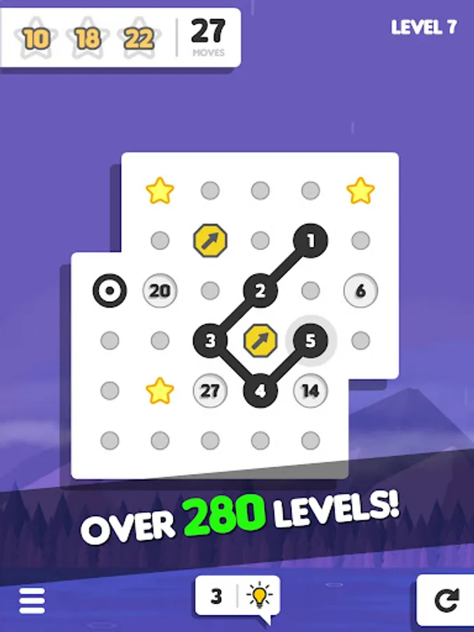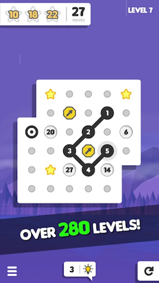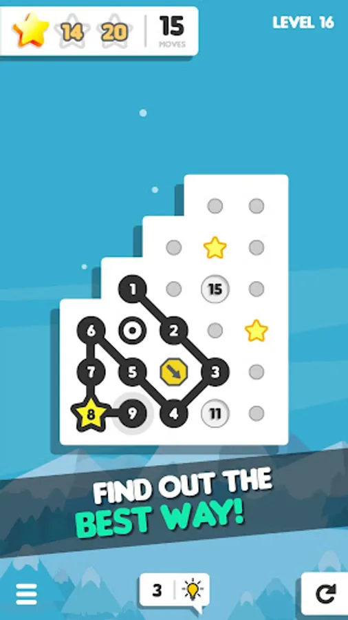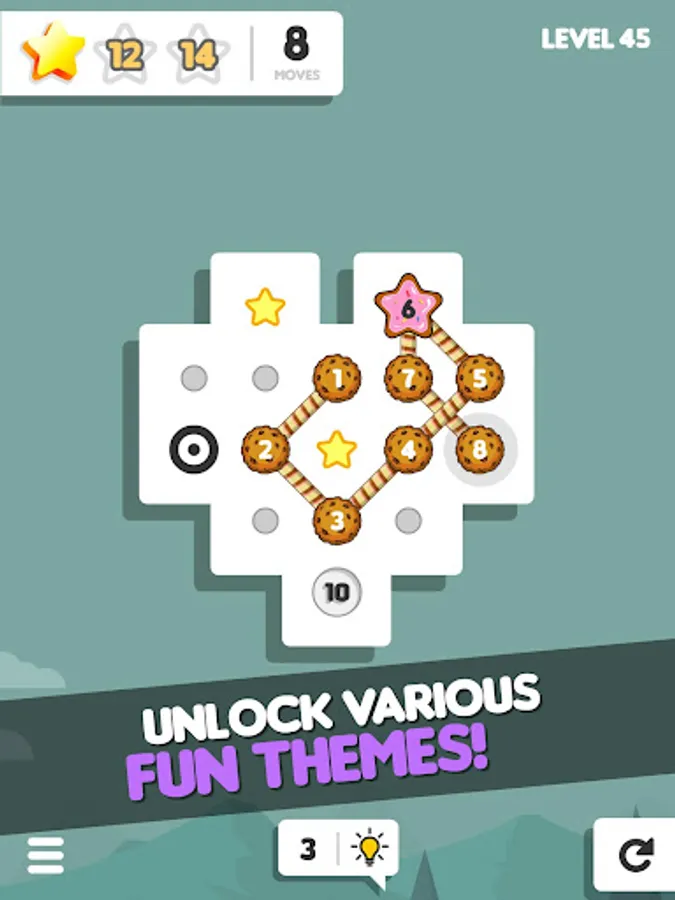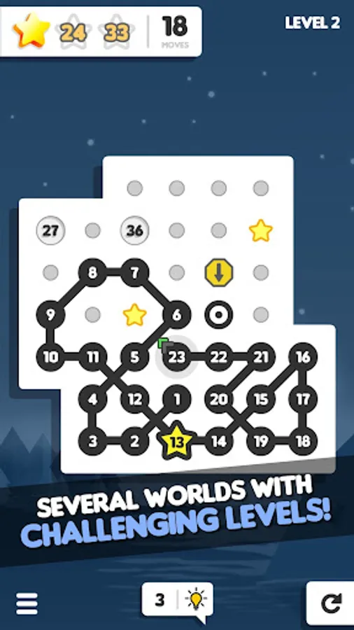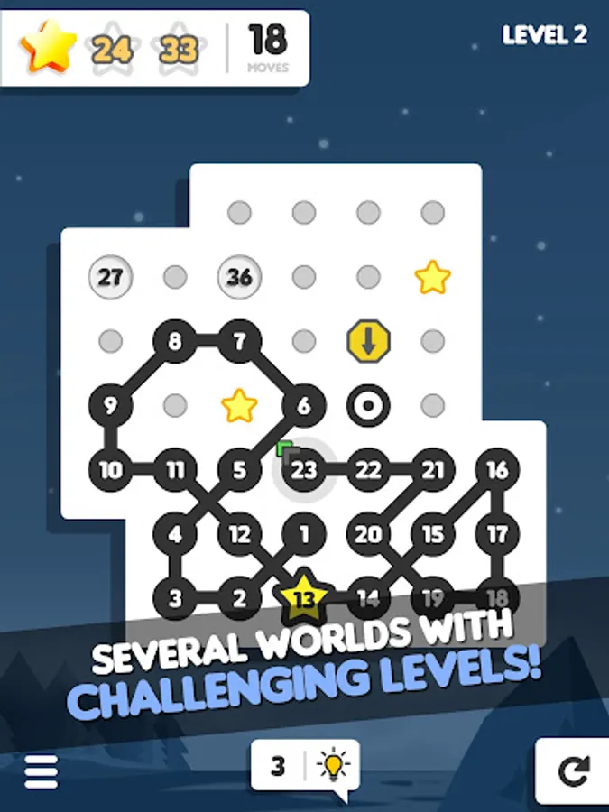 Play freely hundred levels, beginning with the easiest to the most challenging. Each level has several ways to be solved, use your logical reasoning and try to collect all the stars of each world!