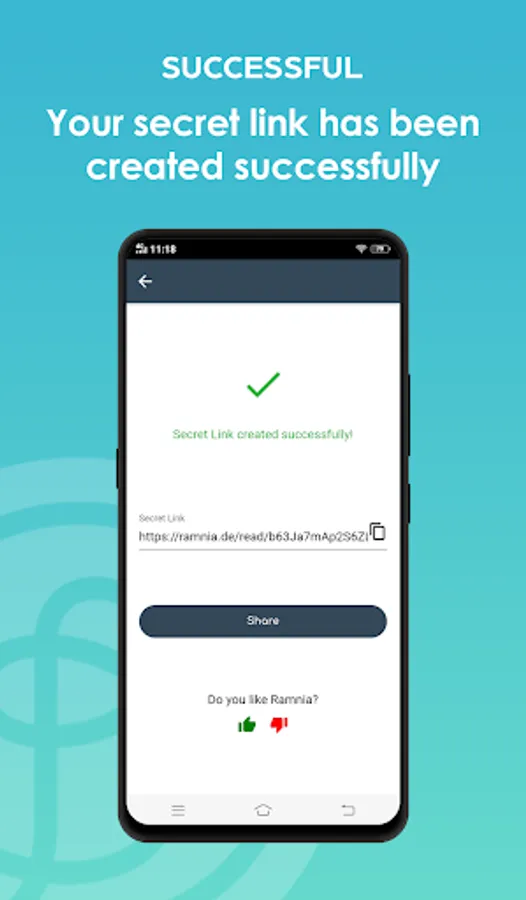 Ramnia is a message and file upload service. You can sent messages and files via a special link that can only be opened once. The app does not need to be installed on the recipients device to access the message or file.