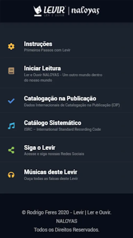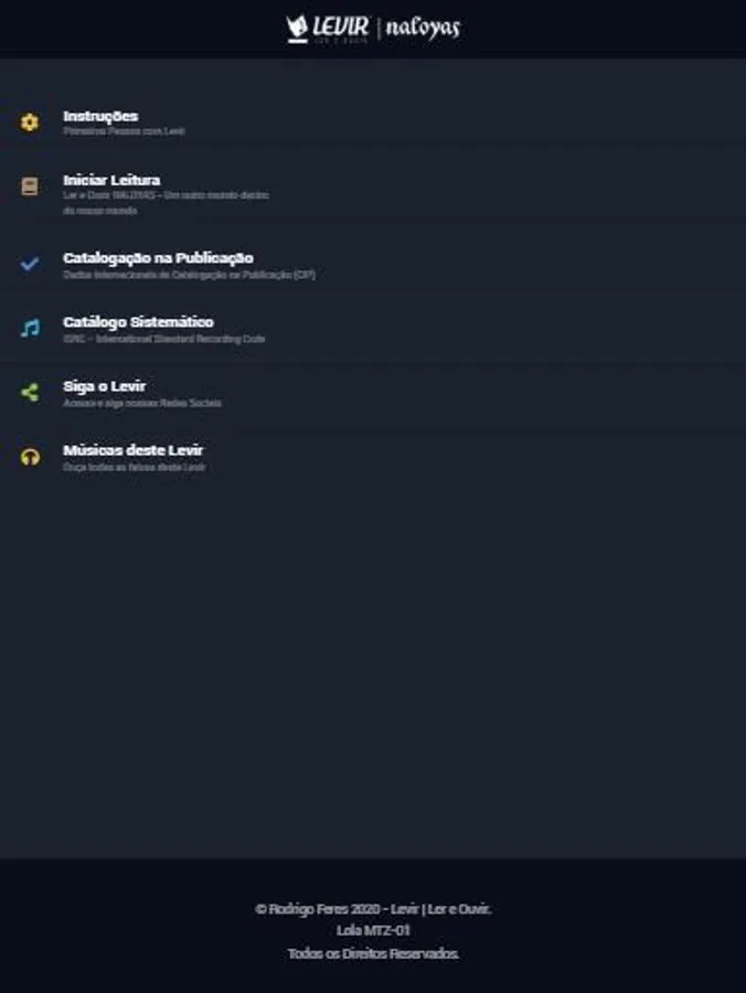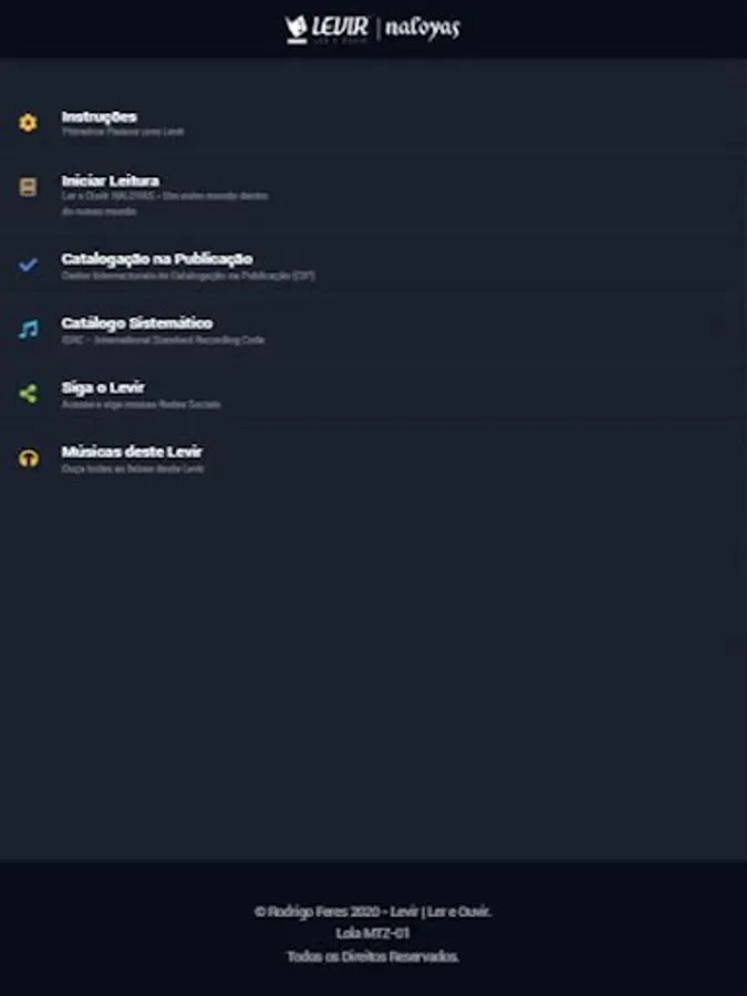 The Levir appbooks have a very interesting difference: a soundtrack inserted in the text, made exclusively to enrich your perception of the scenario created by the author. As in the cinema, Levir appbooks expand the reader's perception to the maximum! The songs on the soundtrack are composed exclusively by the author for each book! This is the Levir for Words Hidden in the Wind AppBook by author Rodrigo Feres.