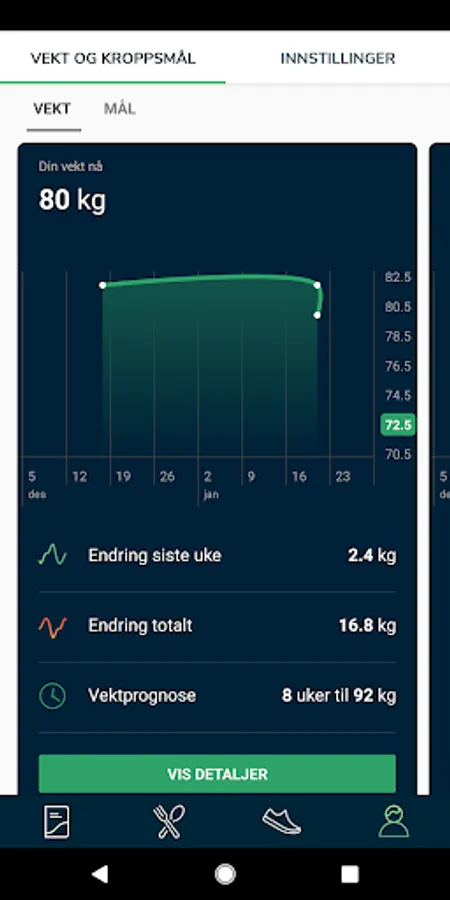 - Everything is in Norwegian, adapted to Norwegian diet and lifestyle, with access to the most complete Norwegian food database.