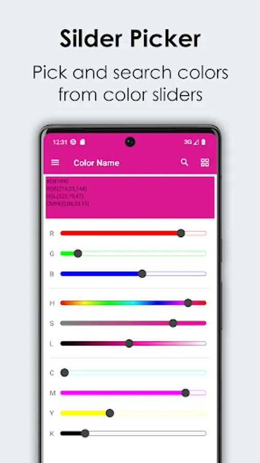 3. Support search by picking color from RGB, HSL, CMYK silders