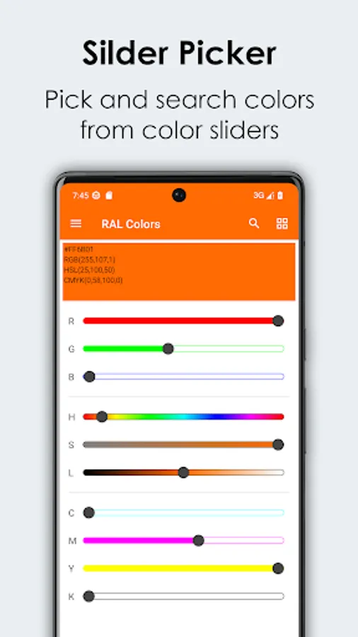 3. Support search by picking color from RGB, HSL, CMYK silders
