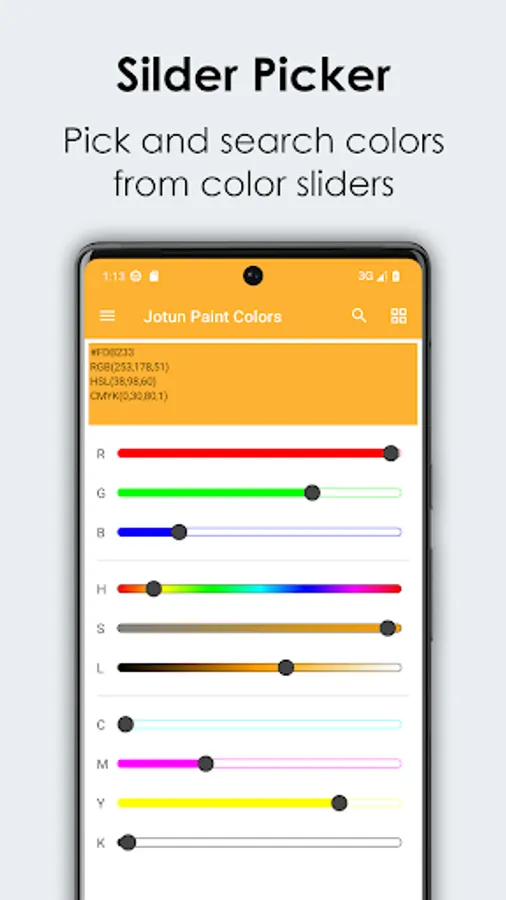 3. Support search by picking color from RGB, HSL, CMYK silders