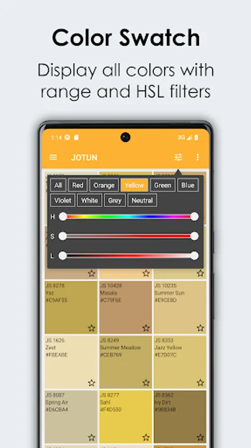 Provides viewing and searching of 650+ Jotun paint colors