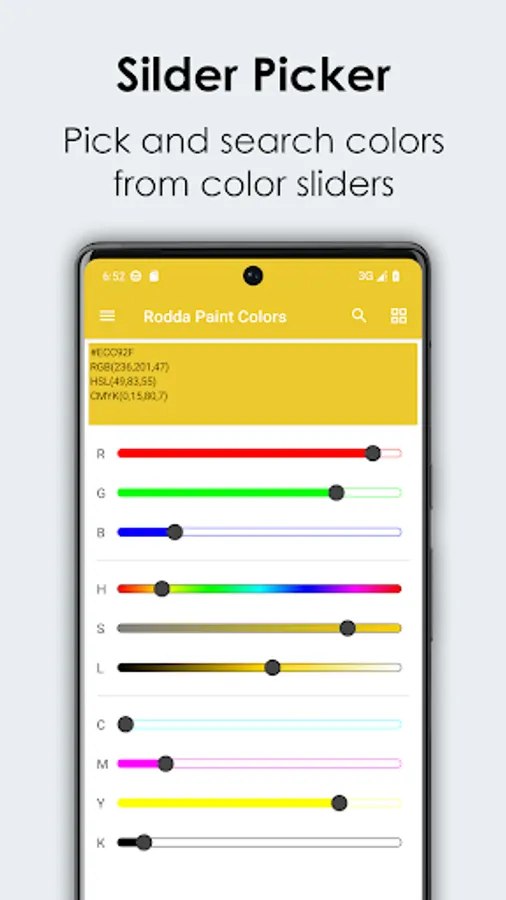 3. Support search by picking color from RGB, HSL, CMYK silders