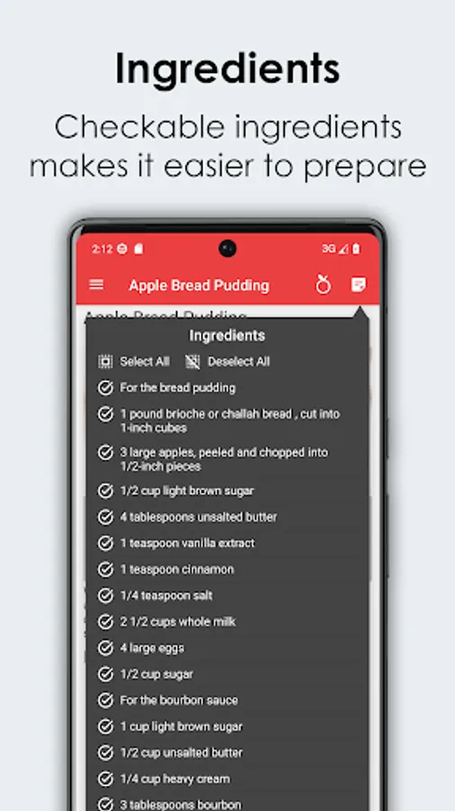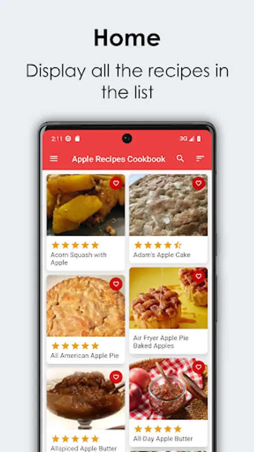• 500+ offline recipes for apples, including pie, cake, bread, salad, and more.