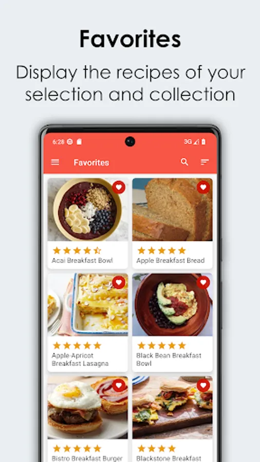 • A favorites function that lets you save your favorite recipes.