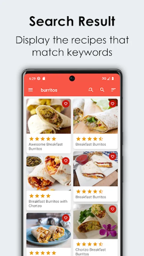 • 400+ offline recipes for Breakfast, including burritos, pizza, tacos, bread, and more.