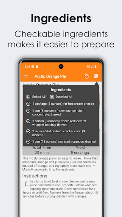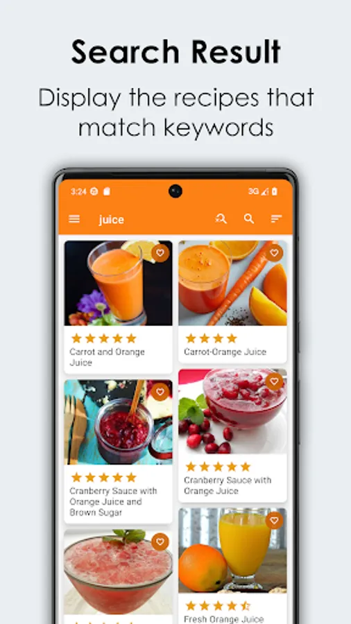 • 500+ offline recipes for oranges, including cake, juice, salad, cookies, and more.