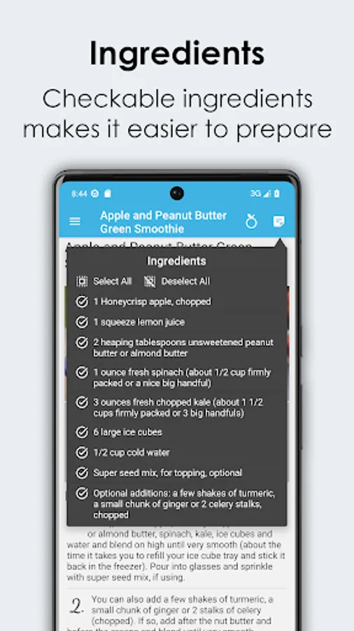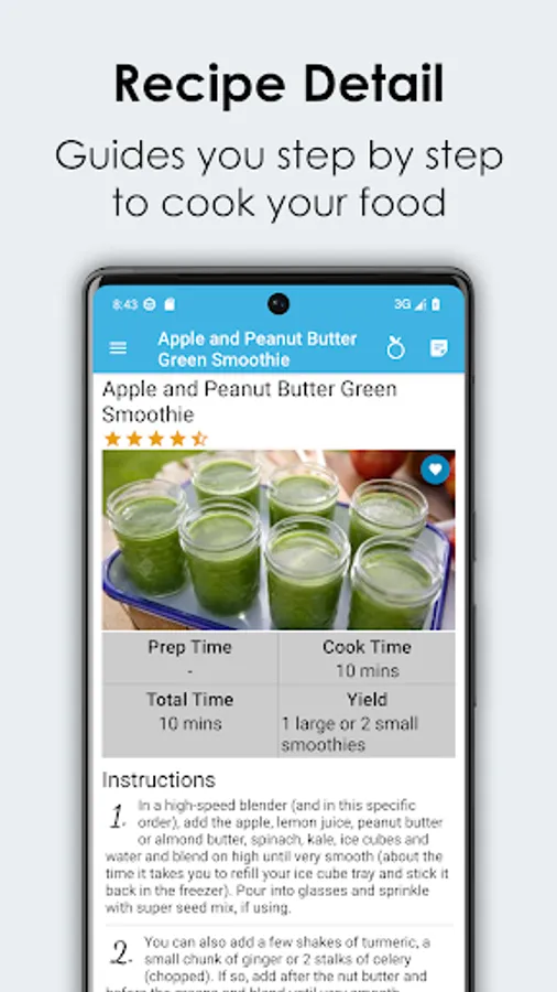 • 500+ offline recipes for Smoothie, including banana, apple, strawberry, coconut, cherry, and more.
