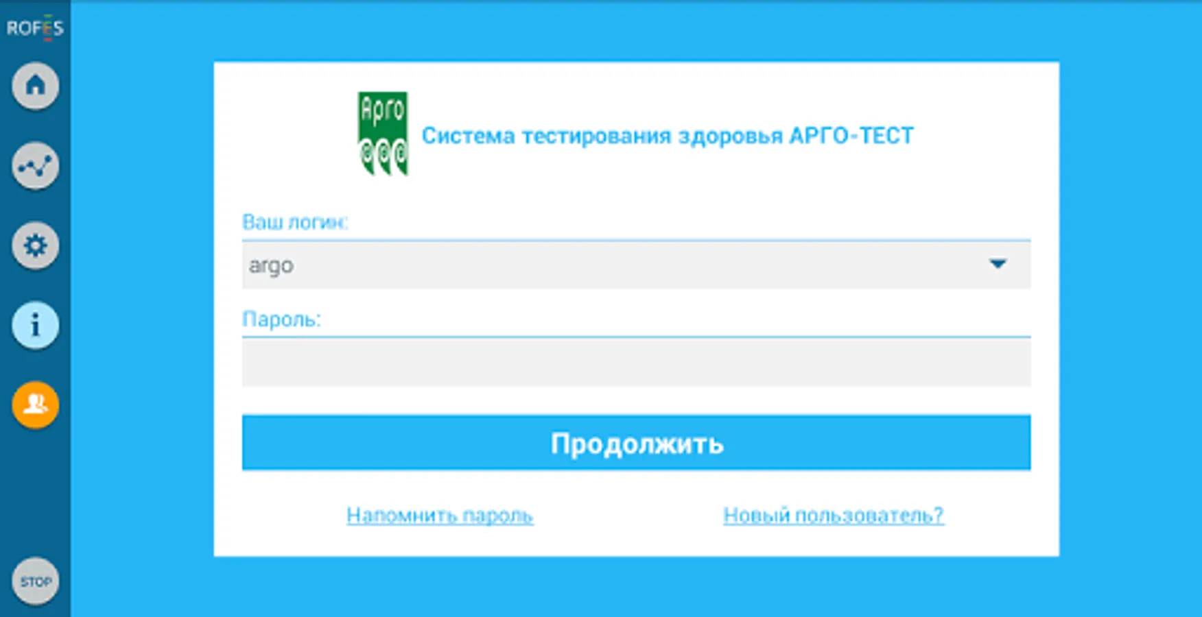 ARGO-TEST - software of the APK ROFES E01C for testing the functional state of the body, containing recommendations for the wellness programs of the ARGO Company.