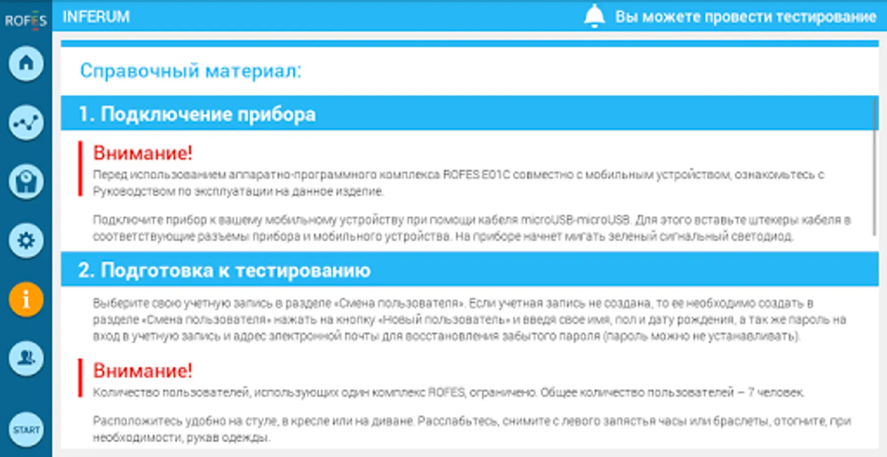 ATTENTION! To take measurements, you need a ROFES E01C device.