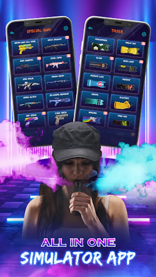 âš¡ But this Vape Simulator app has more in store for you! If you're a guns lover, prepare to be blown away by our VIRTUAL GUN sounds feature. Experience the rush of firing an extensive selection of real guns, pistols, tazers, bombs,.... The lifelike sounds and realistic sensations will leave you feeling like a true marksman, all while ensuring the safety around you.