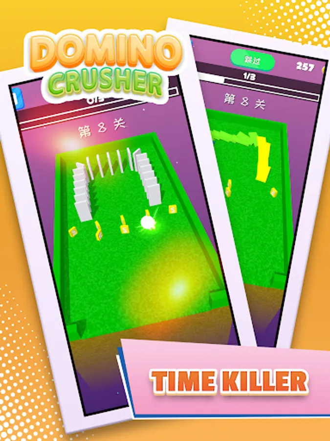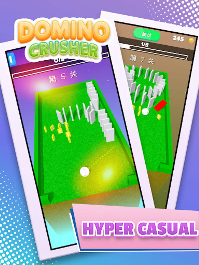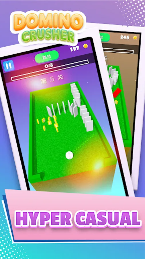 Slash screen to aim, Fire the ball to shoot down all the domino.