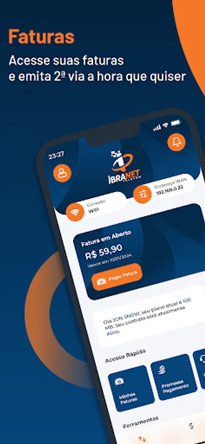 In order to facilitate relationships with its customers, IbraNet connects to you through the new APP. Now you can count on this practical and safe facility, from anywhere and anytime.