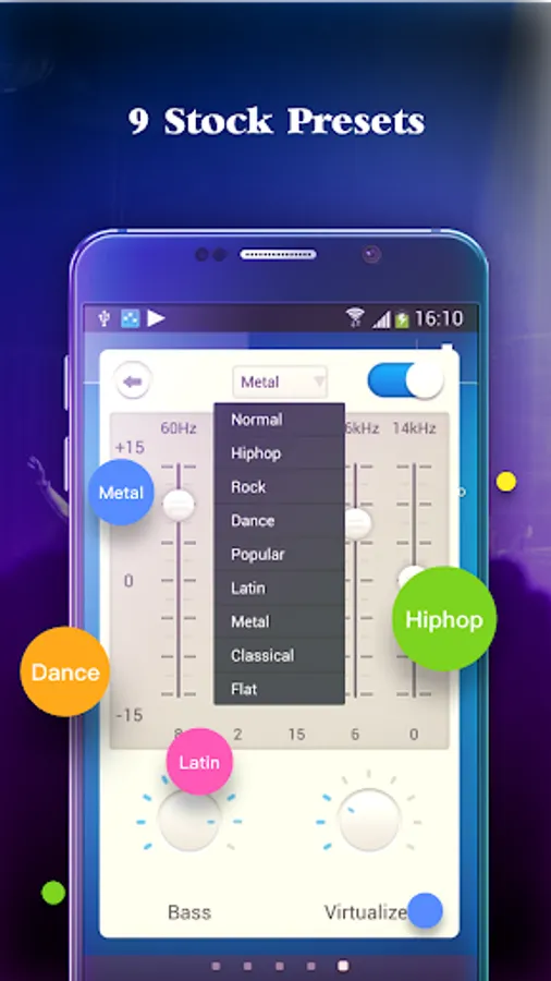 * 9 Stock Presets: Normal, Hiphop, Rock, Dance, Popular, Latin, Metal, Classical, Flat