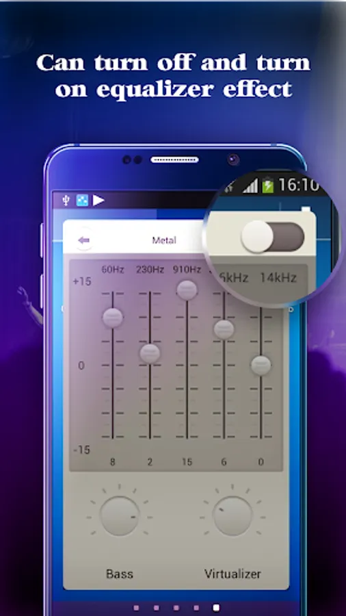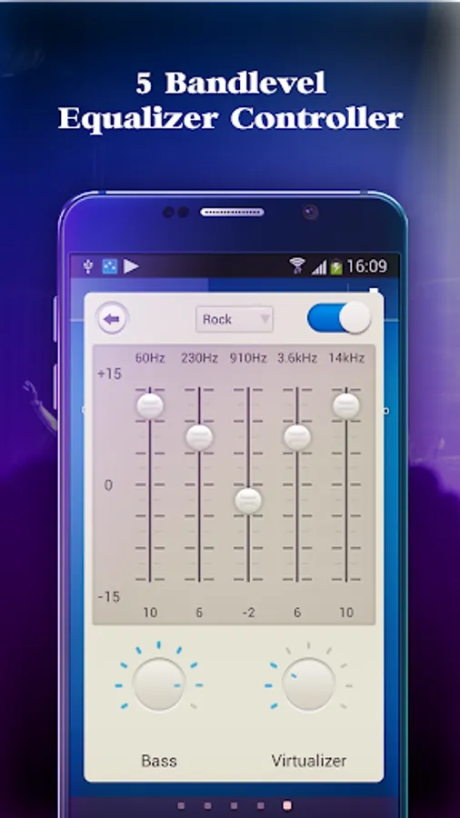 Equalizer lets you adjust sound effect levels and you get the best out of your Music or Audio coming out of your phone. Music Equalizer presets automatically mix bass, treble and vocal levels for maximum effect, whatever your type of music.