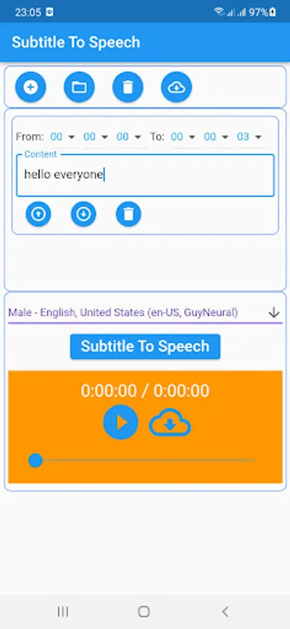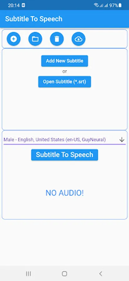 This tool help you to convert subtitle (.srt) to audio file (.mp3). Just upload subtitle file and the app will create speech for you