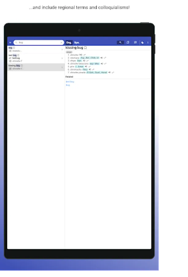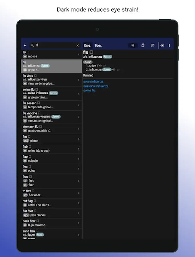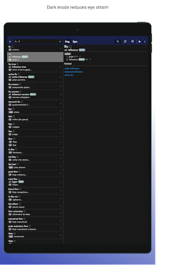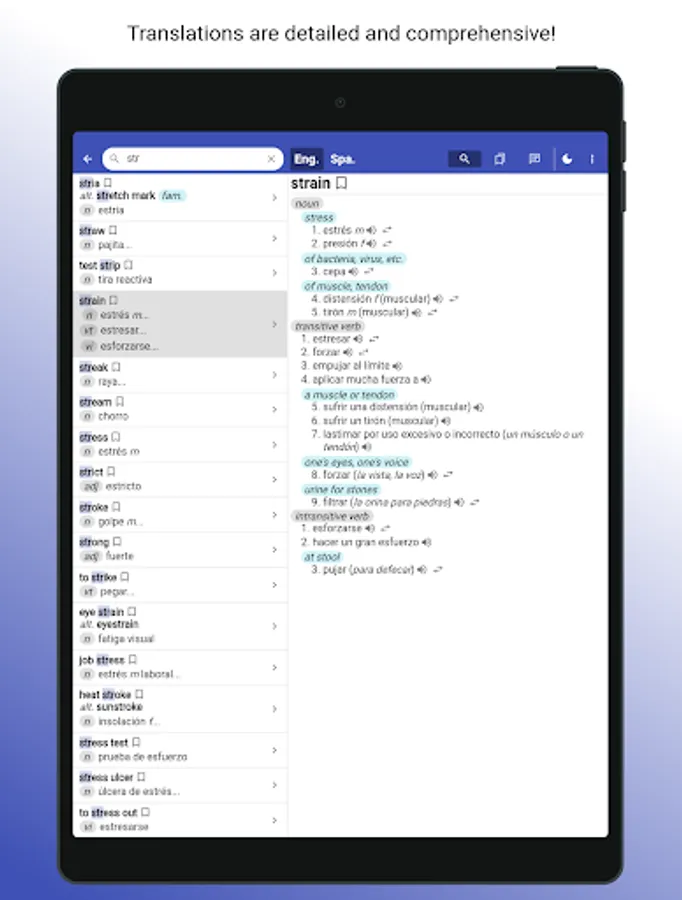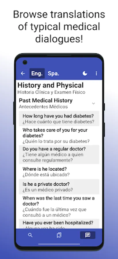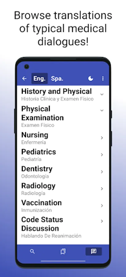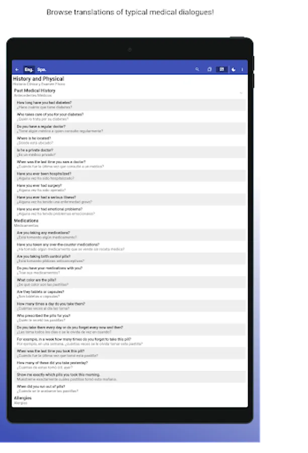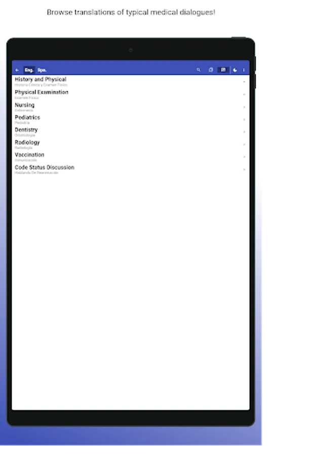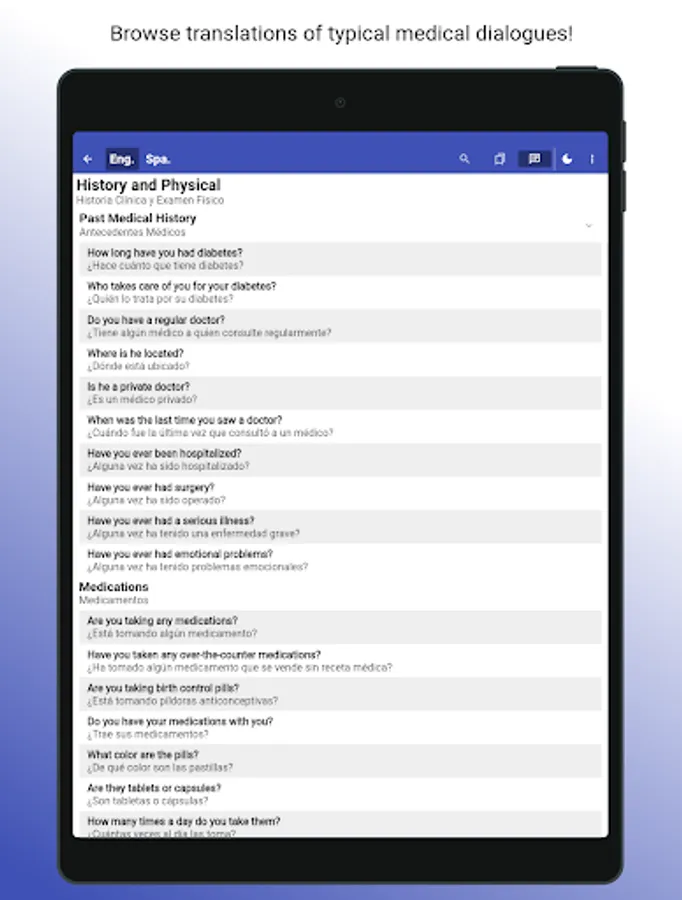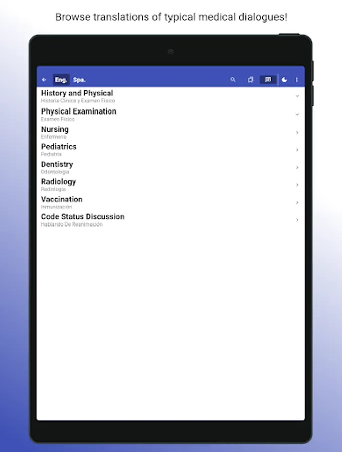 Beginners will use the app for vocabulary building and can profit from the extensive Dialogue section. More advanced speakers can use the app on the fly to find the right term needed to get a point across. Professional translators and interpreters will find the app sufficiently rigorous for the most demanding setting, whether for a government document or in the ICU.