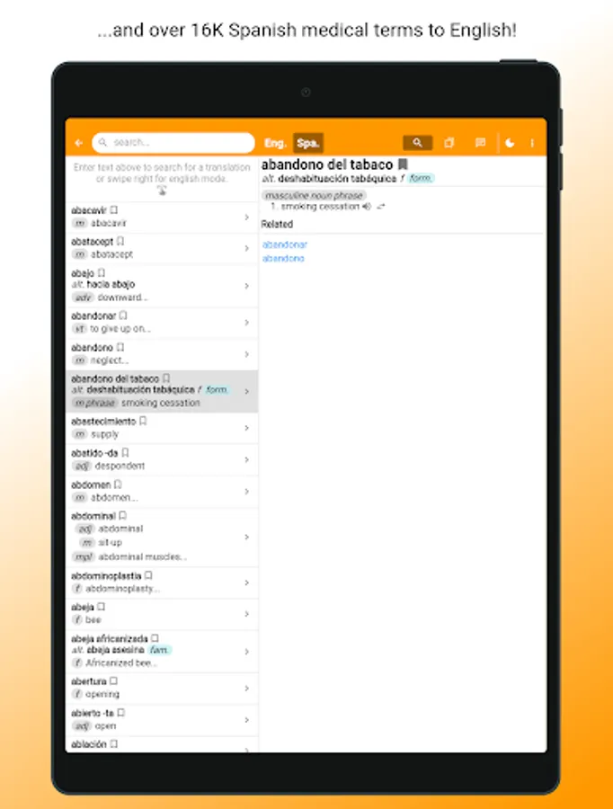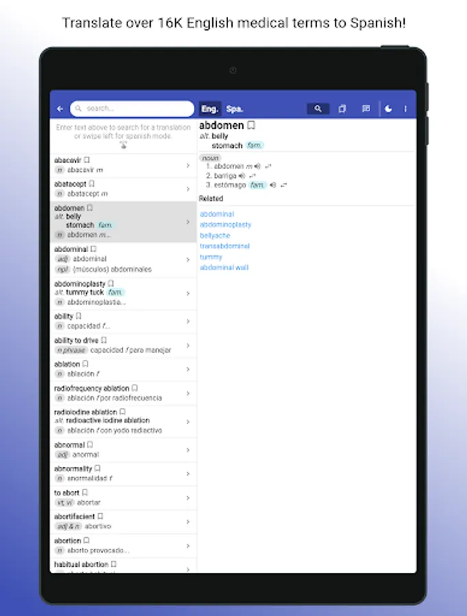 Rogers dictionary provides the most accurate translations available! It is based on Dr. Rogers' physical print bilingual medical dictionary, which was first published in 1991, has gone through 4 editions, and is considered an authority on English and Spanish medical terminology translation.
