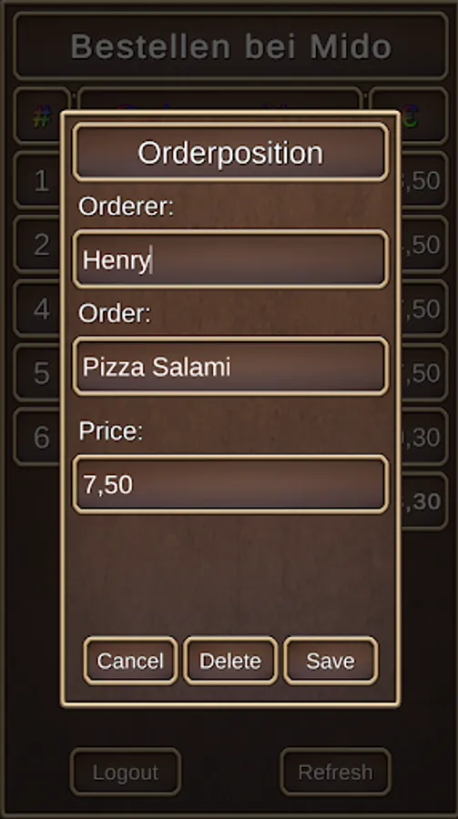 With this application you can easily organize orders. Just share the order name and password and off you go!