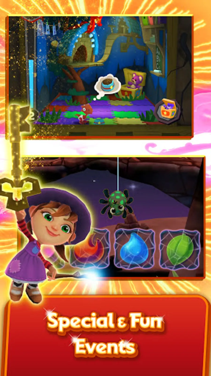 A magical match 3 adventure like no others! Join Lily the Little Witch on a new match 3 adventure to restore her castle and save her friends from the Evil Warlock! Experience a fun and addictive matching game where you swap and solve magic match 3 puzzles to raise majestic dragons in the castle of your dreams!