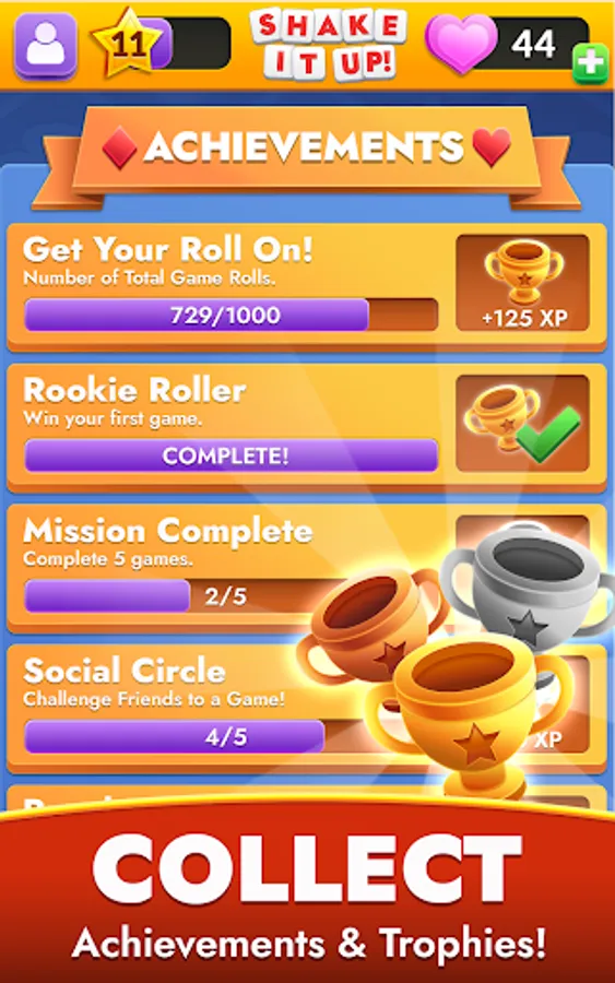 - Collect achievements,trophies, and experience points as you work toward new rewards