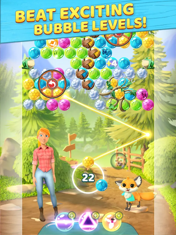 Complete bubble puzzles to unlock new areas on your farm to restore! Discover new wildlife and friends as you explore new locations around your home.