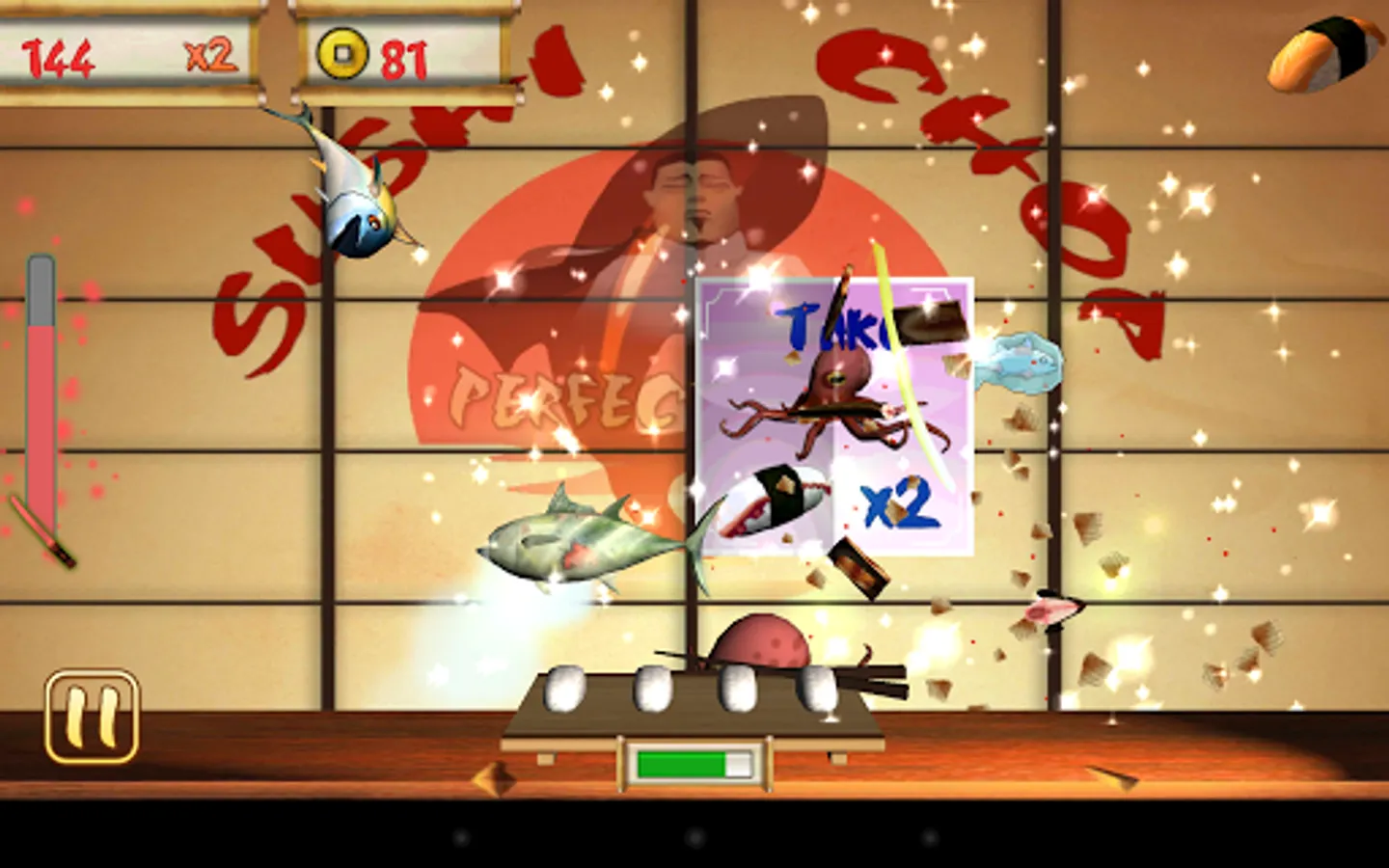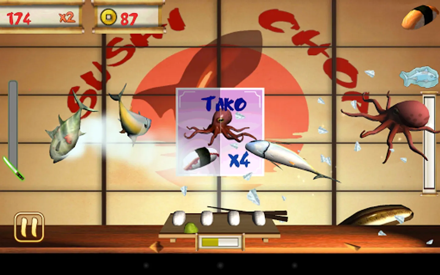 • 2 Game modes! Earn as much as you can with 3 lives in SushiChop mode, then tackle SushiMaster mode, where you are tasked with slicing only the fish that match the order cards!