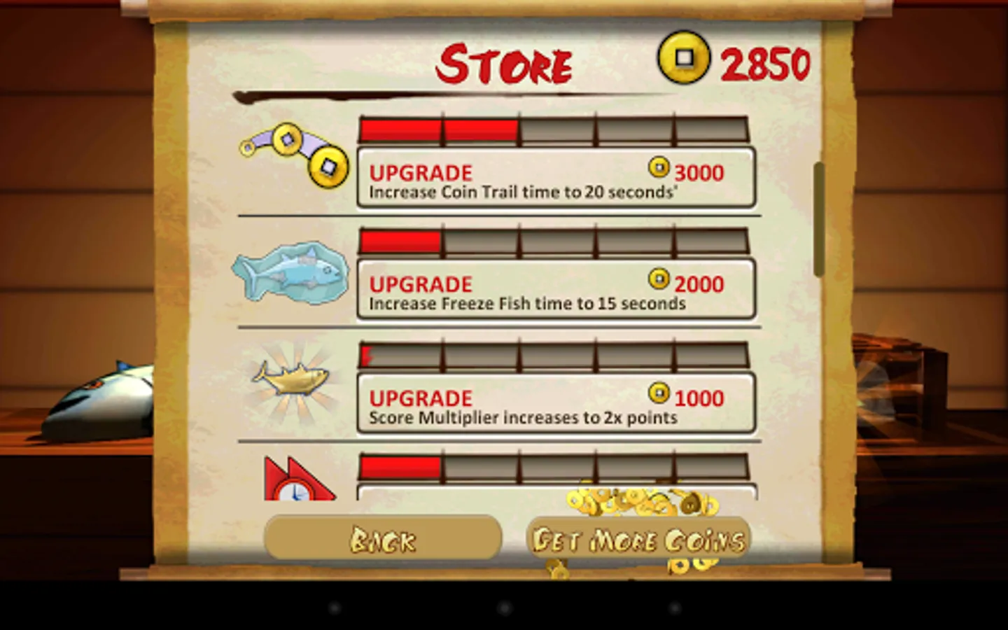 Cut with precision and skill to fill each tray before the timer runs out. Fill a tray chopping the fewest fish necessary to earn a Perfect Chop bonus, but beware the stinky green fish!