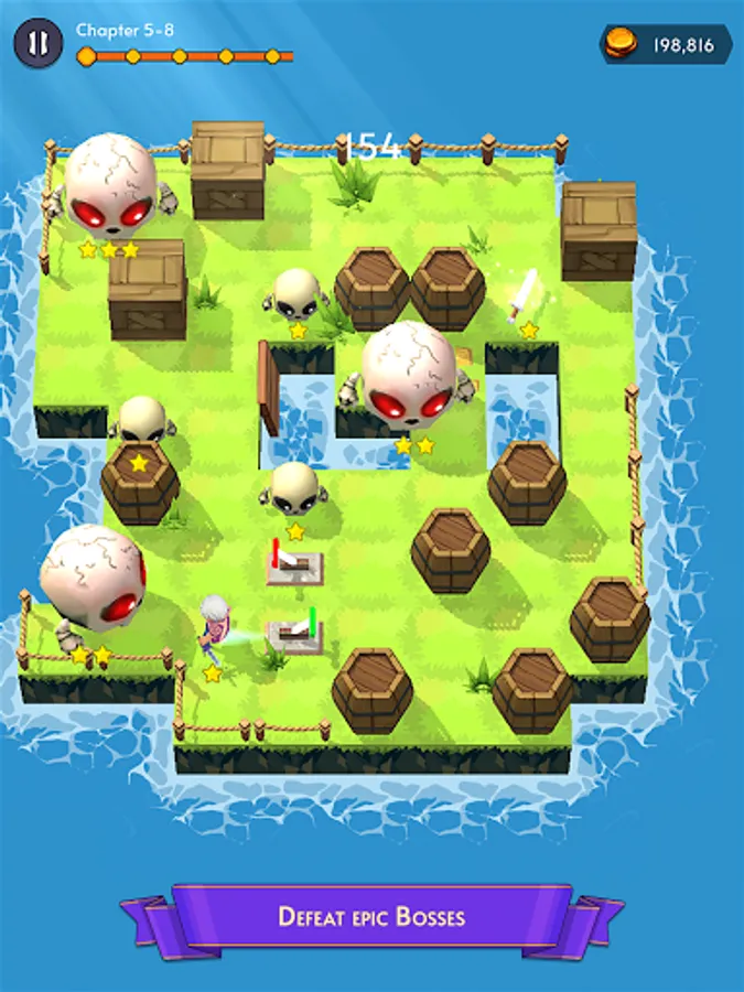 Use the best strategy to defeat all the monsters, remember to keep an eye on the time, and don't fall down to the sea.