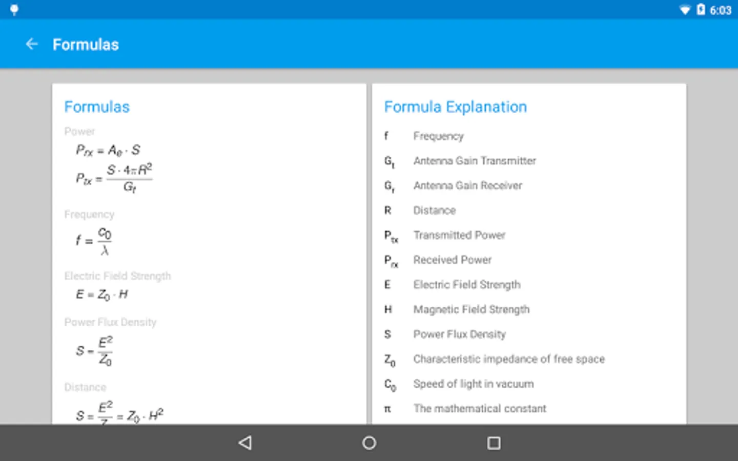 The program Field Strength and Power Estimator calculates power flux density, electric and magnetic field strength from the transmitted power, associated frequency and gain of the transmitting antenna.