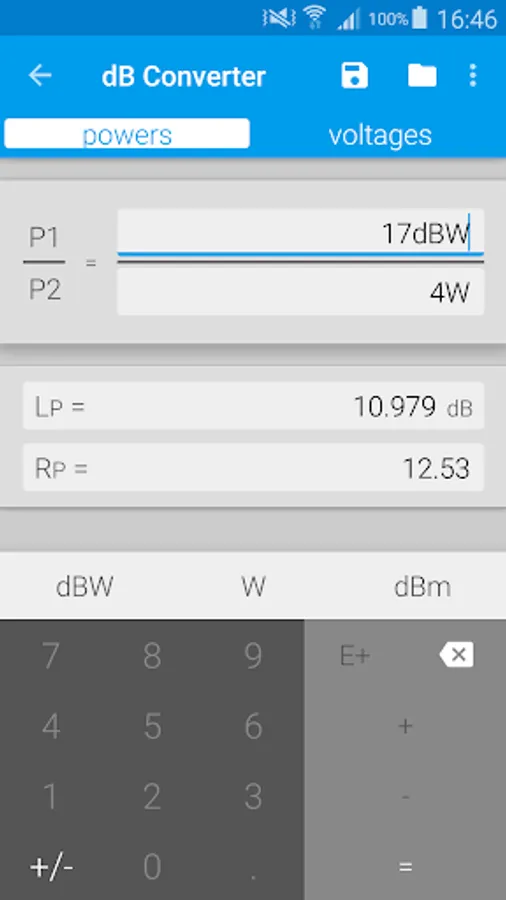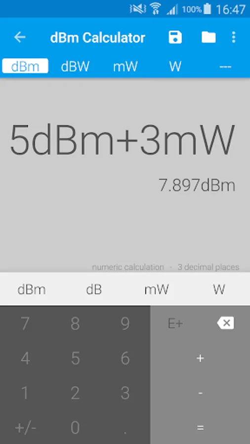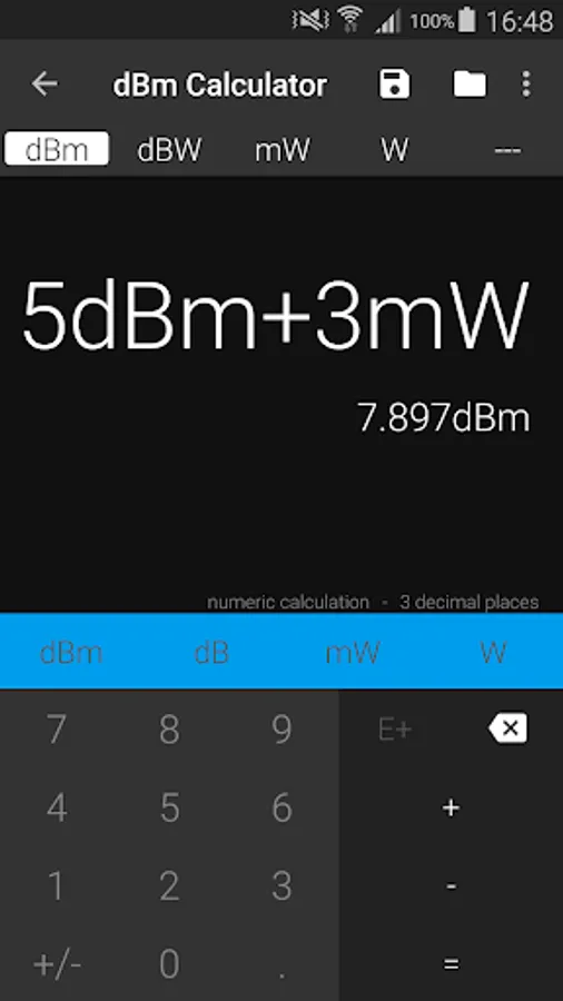 This tools helps to add and subtract an arbitrary number of power levels expressed in units of dBm and watt.