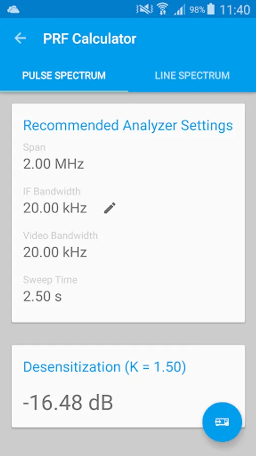 dedicated built-in pulsed-signal analysis features are often not available. The app Pulsed RF Calculator aids in finding the right choice of spectrum analyzer settings to calculate the so-called pulse desensitization for manual compensation of pulsed signal amplitudes.