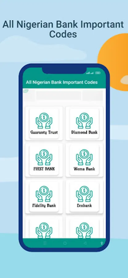 Check all Nigerian Networks Ussd and Bank Codes.Now, you don't need to memorize all codes again, this is filled with all Naija bank codes. They are your providers' short codes to do transactions with them without visiting your them. To use the app, identity your network provider on the list or search your bank in the search box on the toolbar and click on the dial button to perform your transaction. With this app, you can get all subscription codes, recharge codes, bank transfer codes, etc. This USSD codes app also provide you with codes that can enable you to buy airtime, pay bills and other transactions directly from your bank account. In Nigeria, USSD codes are used for various purposes such as checking bank account balances, recharging airtime, paying bills, and more.