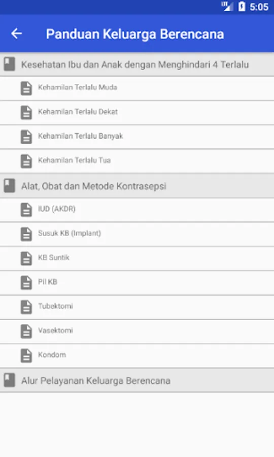 Handbook of Family Planning (KB) contains the following material: