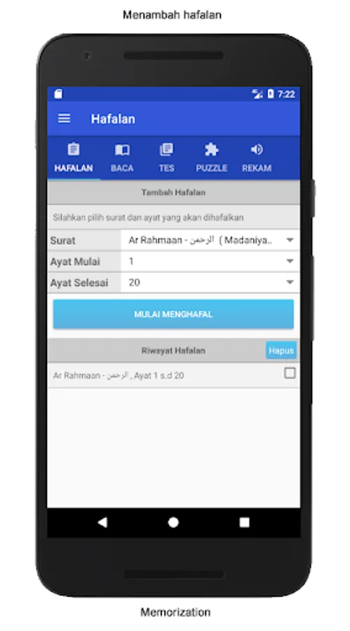 Hafidz Quran is an application to read and memorize Al-Quran independently and gradually