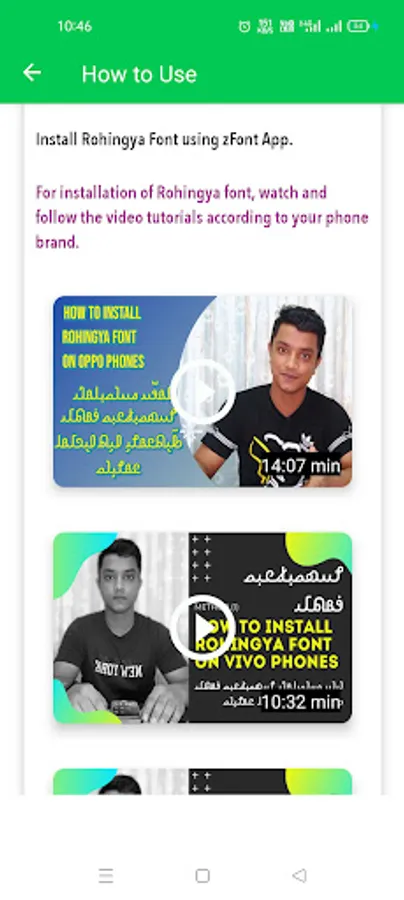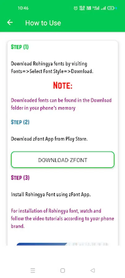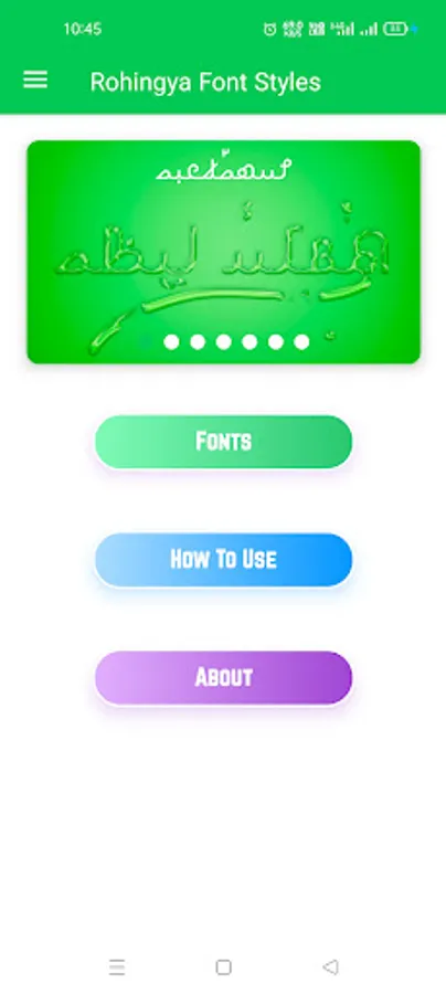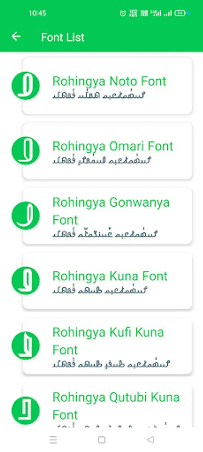 All fonts in this App were designed by some Rohingya designers. However, they could not be used in machines due to their incompatibility with Unicode. As soon as I realised this problem, I became obsessed with creating font designs that could be used on any machine. It is only through the help of almighty Allah that I was able to develop this app with eight different styles of Rohingya fonts that are available for free download. You can test the fonts even before downloading, and once you've downloaded , you can use them as you please. In case you are not sure how and where to use all those fonts, you can check out the "How To Use" section on the first screen to find out more. I tried my best to create this app user-friendly. I hope you enjoy it . If you have any problems or suggestions related to this app then please send me feedback. All feedbacks and comments are welcome.I created this app for education purposes for free.