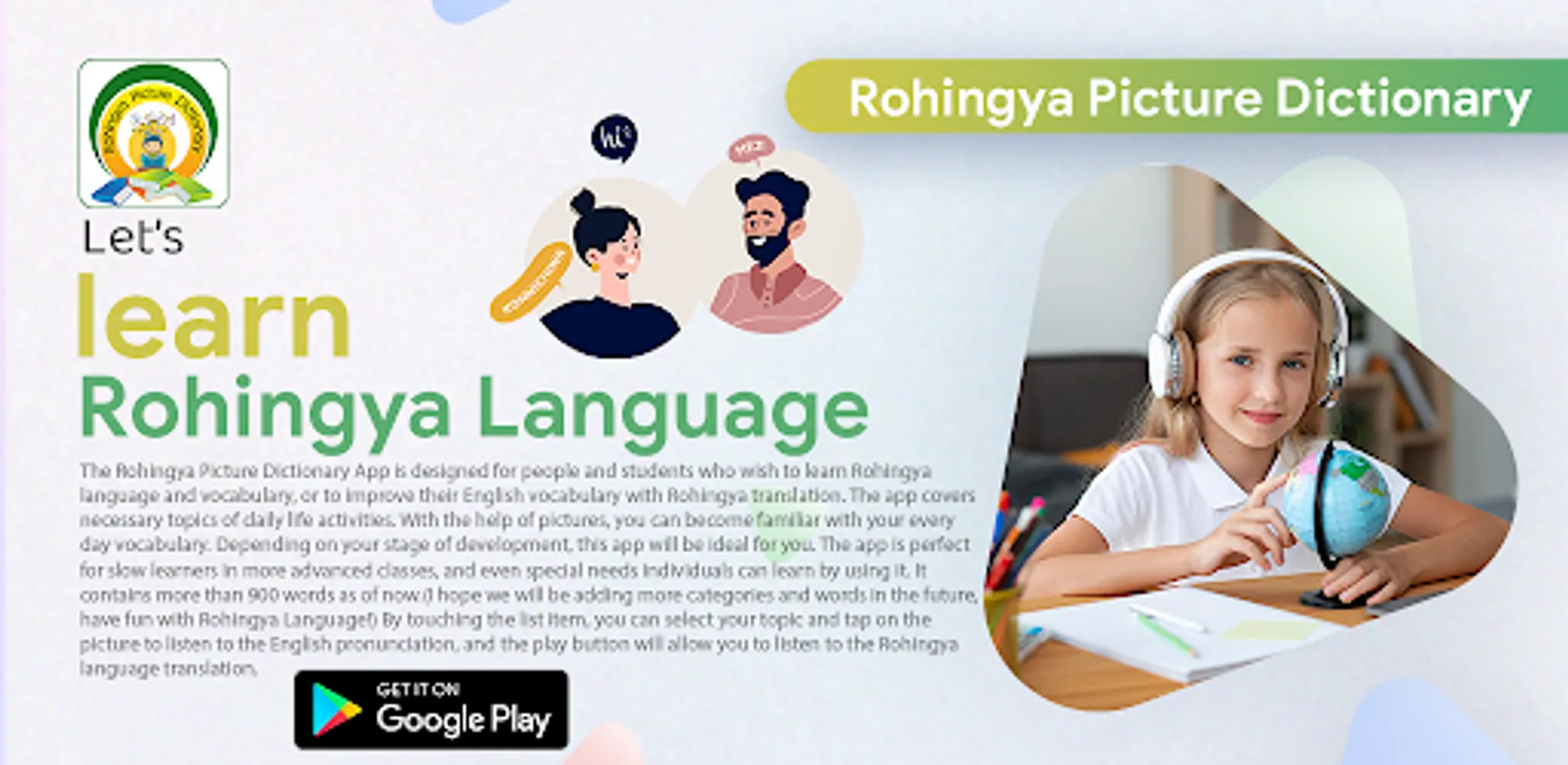 The Rohingya Picture Dictionary app is being presented to all Rohingya Language fans, and we would like to hear your opinions on the content, as well as on the app. Please feel free to leave us your ratings and comments about the app.