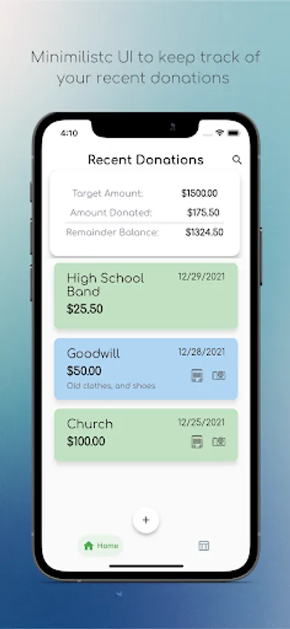 Thank You encourages users to fulfill their set donation goal each year with its goal oriented mindset. With many tools to help you budget your donations throughout the year and constant updates you will never find yourself needing another donation tracker. Thank You also includes a variety of features that help users keep track of individual donations such as pictures/receipts, custom dates, variety of currencies, and much more! Alongside this we include our safe storage system which requires no login and saves everything to your device. All of this combined with our minimalist interface makes Thank You your one stop destination for keeping track of your donations throughout the year. Hope you enjoy and thank you for giving back to your community!